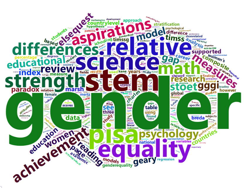 Varios factores contribuyen a esta inconsistencia, incluidos países atípicos específicos, diferentes años de recopilación de datos, diversas fuentes de datos, una variedad de medidas compuestas y específicas de dominio de igualdad de género y modelos estadísticos. El estudio también presenta un modelo estadístico robusto para comparar el desempeño en tres materias y evaluar el poder predictivo de las medidas de fuerza relativa para las aspiraciones STEM a nivel estudiantil. Los análisis revelan que el rendimiento académico general y el rendimiento en matemáticas en relación con la lectura son predictores clave de las aspiraciones STEM, en comparación con el rendimiento en ciencias en relación con las matemáticas y la lectura.