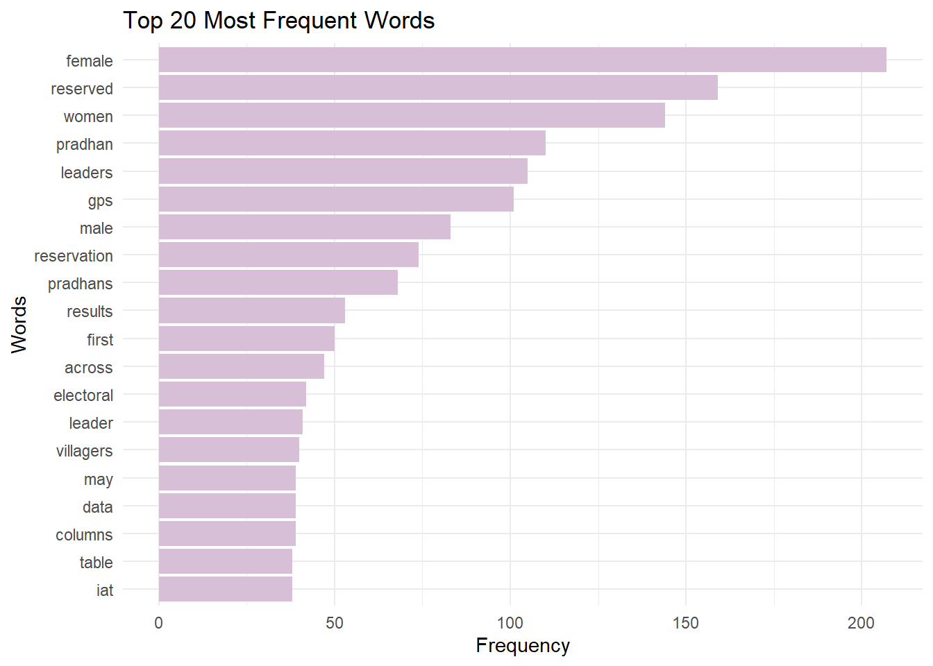 El documento ‘powerfulwomen.pdf’ contiene 8108 palabras y se centra principalmente en female, reserved, women, pradhan, leaders, gps, male, reservation, pradhans, results. El texto exhibe un tono predominantemente positive. Los temas clave que surgen del análisis incluyen female leaders, female pradhans, gps reserved, reserved reserved, female pradhan. Las palabras que más contribuyen al sentimiento positivo son effectiveness, significant, good, important, consistent, mientras que las que más contribuyen al sentimiento negativo son bias, discrimination, regression, errors, deviation.